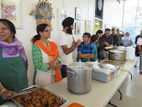 Langar means common kitchen in temples where food is served to all visitors without distinction of background for free. While the act of sharing nourishment is important in the langar, hospitality is more important. As opposed to a soup kitchen where one group serves another, the langar ensures participants sit down to a meal as equals, Kulwant Kaur, a local leader of the Albuquerque Sikh Budwara told me in a conversation.